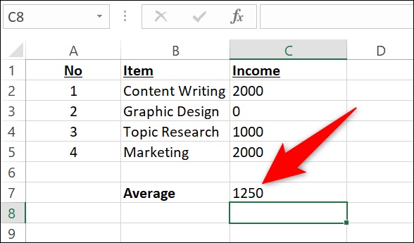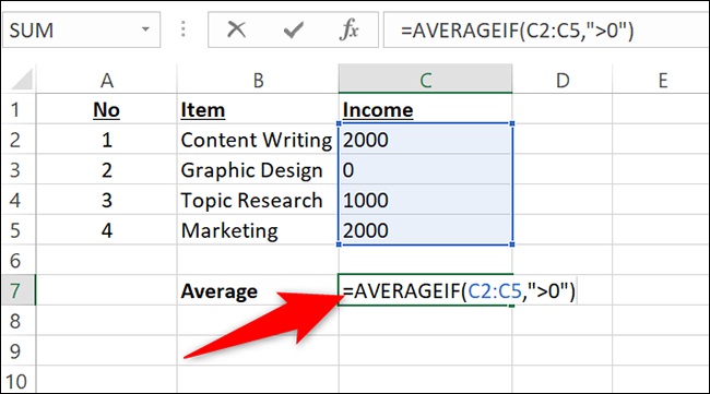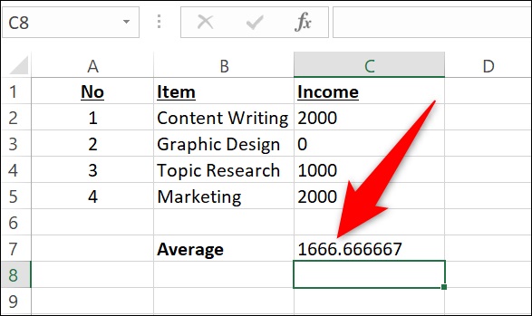 به این ترتیب مشاهده خواهید کرد که اکسل محاسبه میانگین را بدون در نظر گرفتن هیچ یک از سلول هایی که حاوی مقدار صفر هستند انجام می دهد.