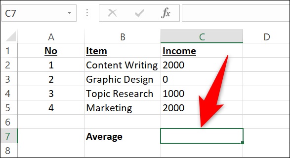 برای استفاده از این تابع، ابتدا صفحه گسترده خود را در مایکروسافت اکسل باز کنید. سپس در صفحه گسترده خود، بر روی سلولی که می خواهید میانگین به دست آمده را در آن نمایش دهید کلیک کنید.