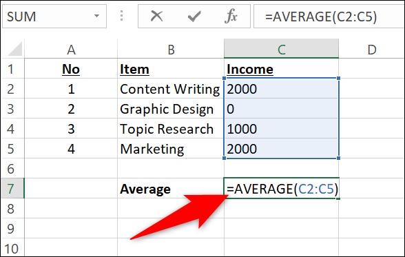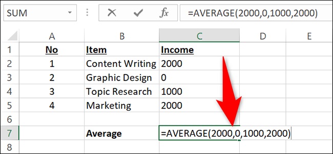 اگر اعداد مد نظر شما در یک ردیف یا ستون ممتد نیستند، یا اگر قصد دارید مستقیما مقادیر فرمول را وارد کنید، می توانید برای محاسبه میانگین از تایع AVERAGE Excel استفاده نمایید.