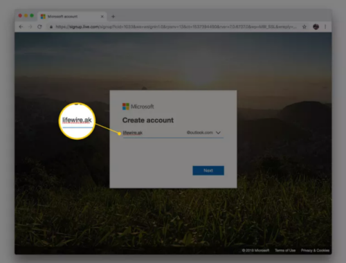 ۲. در صفحه بعدی، یک نام کاربری وارد کنید. بخشی از آدرس ایمیل شما که شامل عبارت “@Outlook.com” است، بطور پیش فرض نوشته شده است.