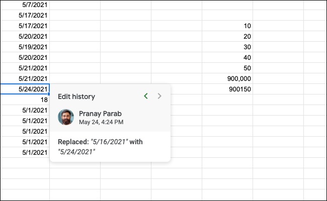 اگر تغییرات یا ویرایش هایی در آن سلول انجام شده باشد، یک پنجره پاپ آپ مشاهده خواهید کرد که نام شخصی که تغییرات را انجام داده به همراه تاریخ، زمان و جزئیات مربوط به ویرایش را نشان میدهد.
