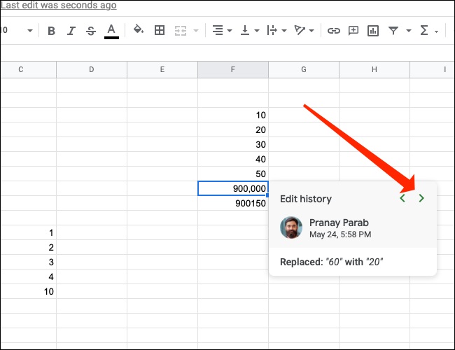 نحوه مشاهده تاریخچه تغییرات یک سلول در گوگل شیت
