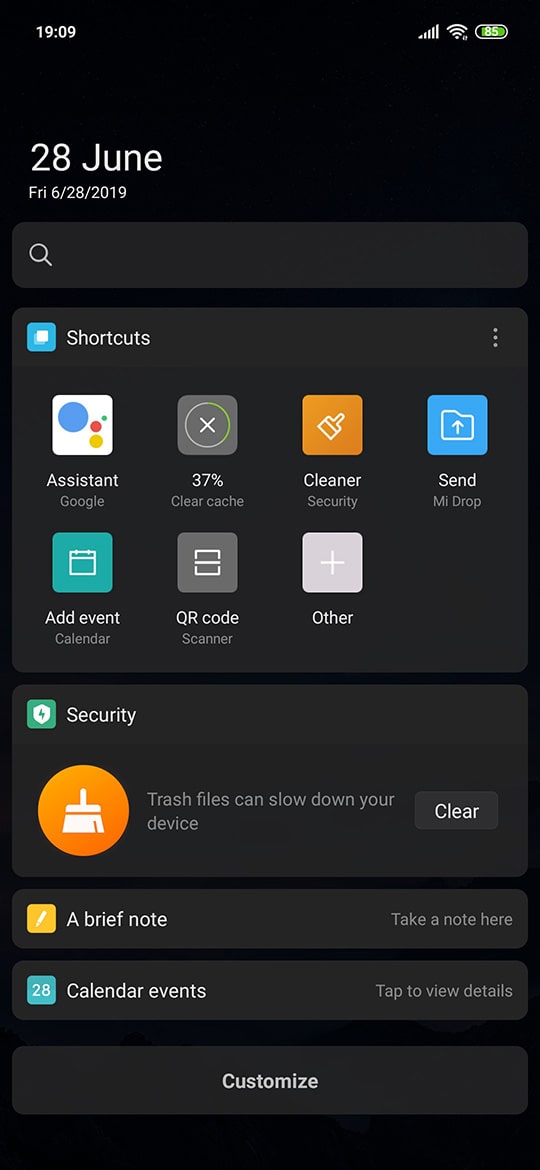 حالت Dark Mode که برای اولین بار در Mi 9 به این خانواده معرفی شده بود، اکنون در Mi 9 SE نیز وجود دارد. همانطور که با عملکرد و ساز و کار این حالت کاملا آشنایی دارید، تمام رنگهای سیستمی را از سفید به مشکی تغییر میدهد که به جز این که مانع از خستگی چشم در هنگام کار کردن با گوشی میشود، در کاهش مصرف انرژی باتری گوشی نیز تاثیر بسیار زیادی دارد. البته تمام اپها هنوز قابلیت پشتیبانی کردن از حالت دارک مود ندارند اما اغلب آنها دارند.