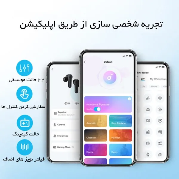 ✅ پشتیبانی از فناوری Bass-Up EQ و ۲۲ حالت اکولایزر مختلف (از طریق اپلیکیشن Soundcore) امکان شخصیسازی کامل صدا را فراهم میکند.