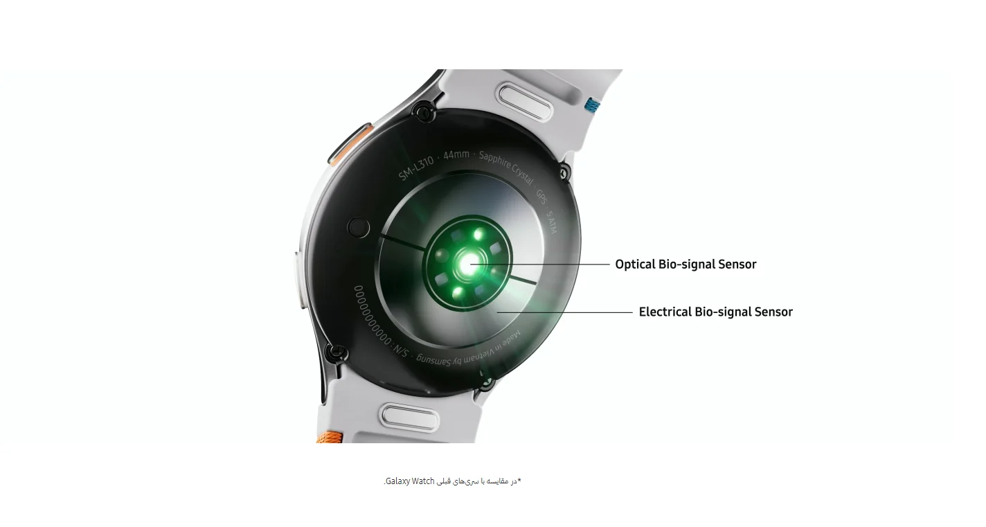 سامسونگ در گلکسی واچ ۷ بر بهبود دقت سنسورهای سلامتی تمرکز کرده است. با افزایش تعداد LEDهای سنسور ضربان قلب به ۱۳ عدد، دقت اندازهگیری در این مدل بسیار بالا رفته و با ساعتهای حرفهای رقابت میکند.