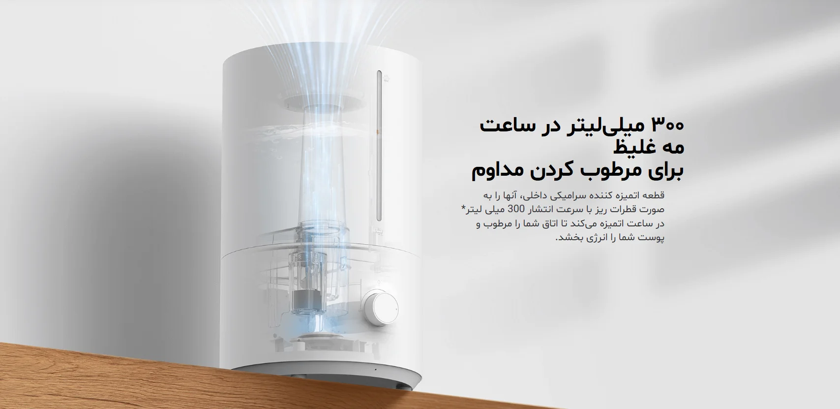 این دستگاه با توان رطوبتدهی 300 میلیلیتر در ساعت، مه بسیار ریز و یکنواختی تولید میکند که بهسرعت خشکی هوا را از بین میبرد. ذرات ریز بخار بهگونهای پخش میشوند که بدون خیس شدن محیط، رطوبت موردنیاز پوست و دستگاه تنفسی را تأمین میکنند. این ویژگی بهویژه در فصل زمستان یا در اتاقهای دارای کولرگازی بسیار کاربردی است.
