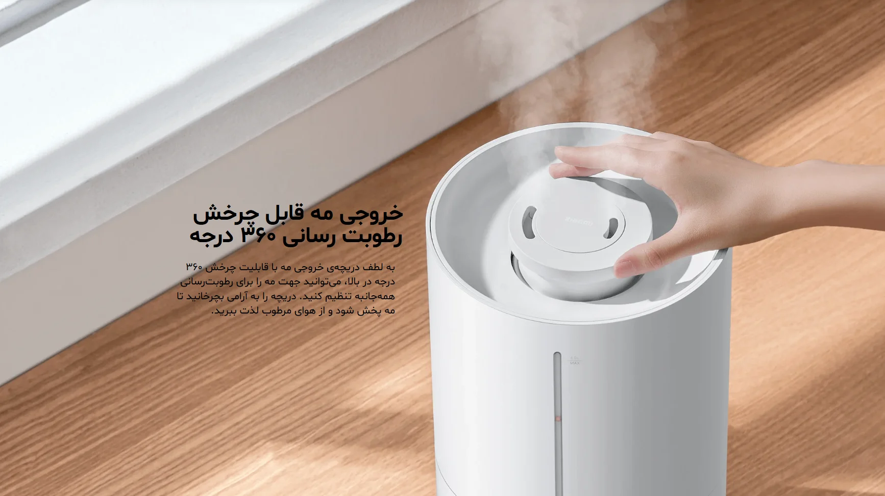 نازل خروجی بخار با قابلیت چرخش 360 درجه به شما اجازه میدهد جهت پخش مه را بهدلخواه تنظیم کنید تا رطوبت بهطور یکنواخت در کل فضا پخش شود.