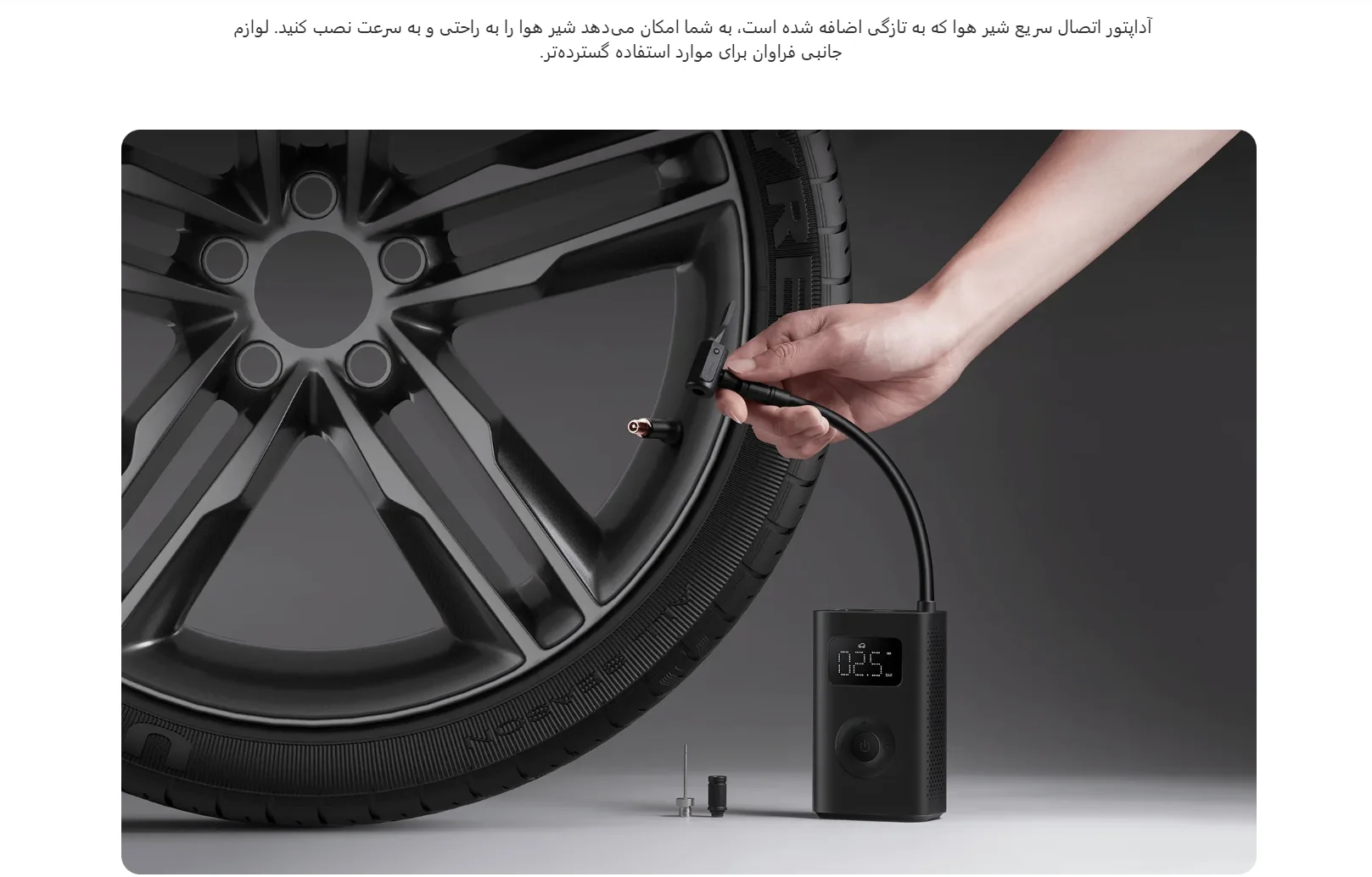 طول شلنگ هوا ۲۰۰ میلیمتر (شامل آداپتور شیر شریدر، به جز انتهای رزوه) |