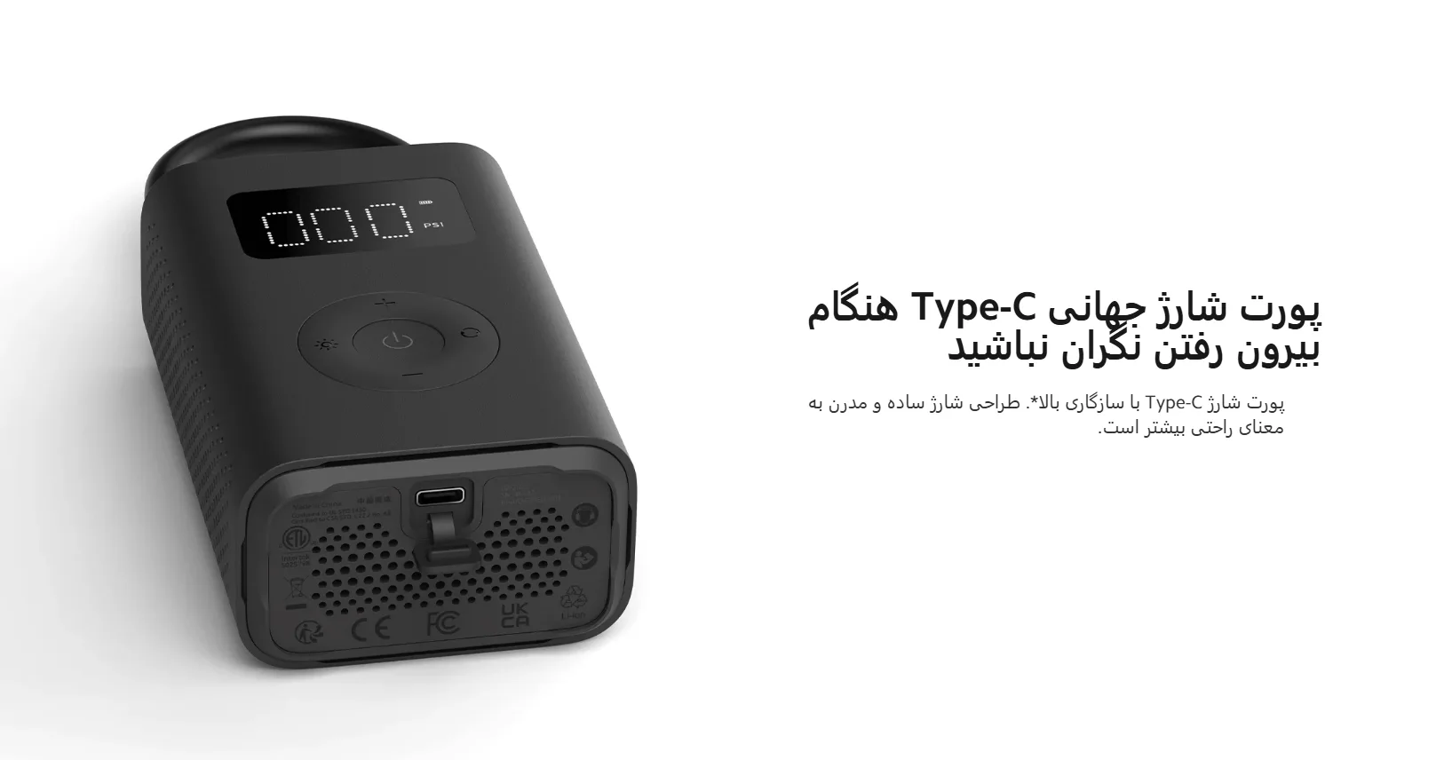 سنسور دیجیتال با دقت ±1 PSI فشار باد را بهصورت لحظهای نمایش میدهد. کافی است فشار مورد نظر را تنظیم کنید تا دستگاه پس از رسیدن به مقدار تعیینشده، بهطور خودکار خاموش شود؛ ویژگیای که هم ایمنی را افزایش میدهد و هم استفاده را سادهتر میکند.