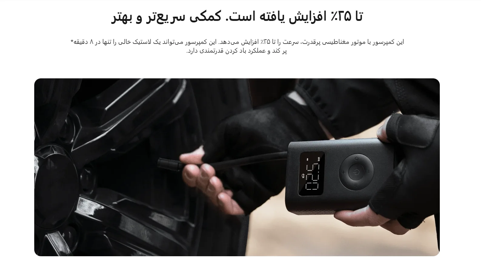 پر کردن کامل یک لاستیک خودرو از صفر تا 2.5 بار: حدود 8 دقیقه
