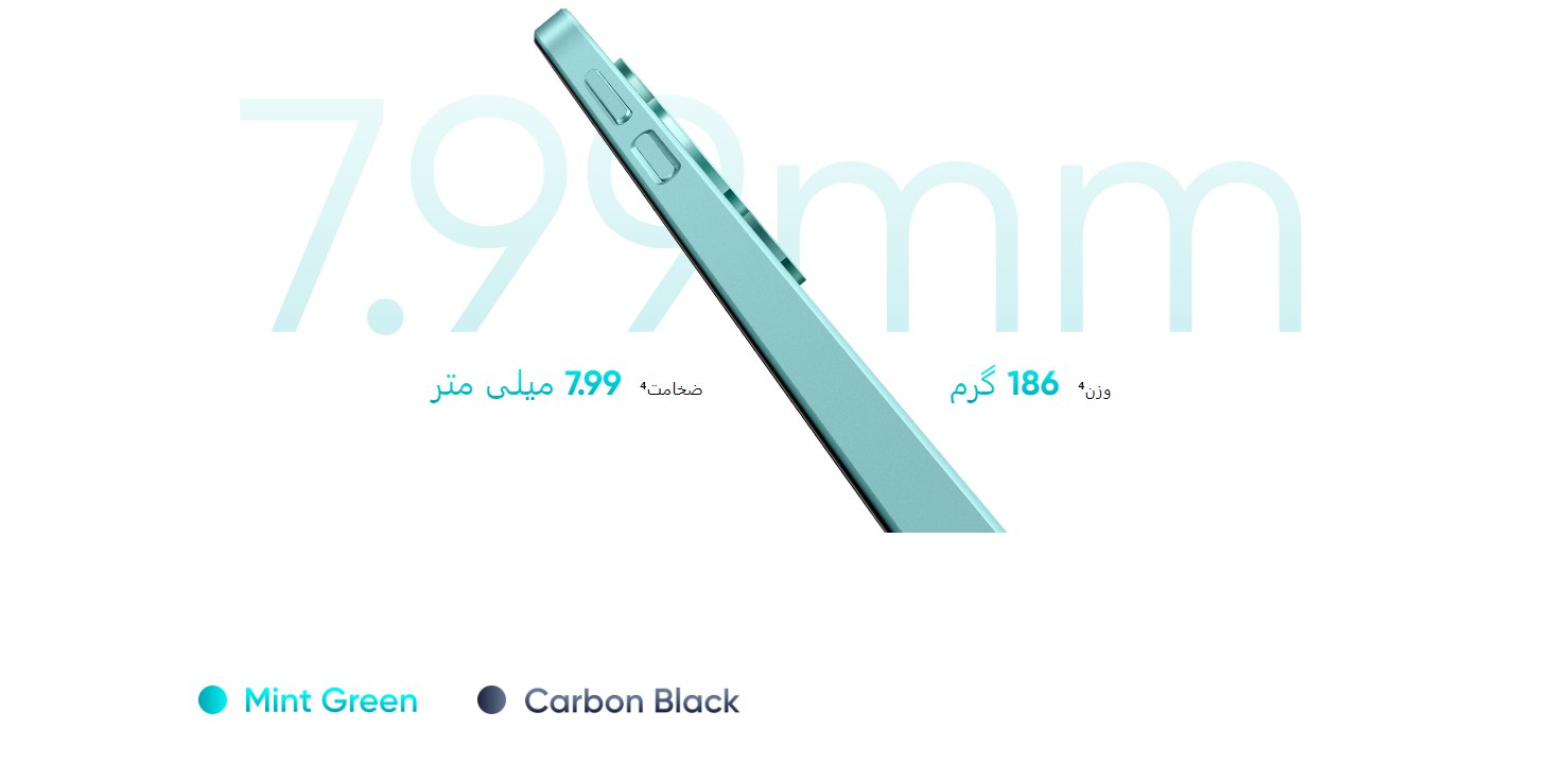 ریلمی C51 با صفحهنمایش بزرگ 6.74 اینچی خود، تجربهای خوب از تماشای محتوا ارائه میدهد، اما ممکن است برای کاربرانی که دستهای کوچکتری دارند، کمی بزرگ و ناآسان باشد. این گوشی با طراحی جذاب و دو رنگ “سبز نعناع” و “مشکی کربنی” عرضه میشود. متأسفانه، قسمت براق پشت گوشی مستعد جذب اثر انگشت و گرد و غبار است.