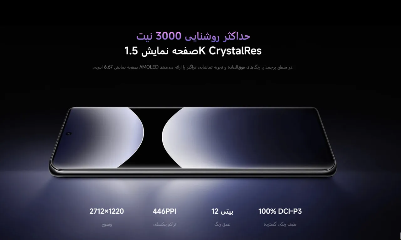 پوشش 100 درصدی فضای رنگی DCI-P3 ,عمق رنگ 12 بیت ,نرخ ثبت لمس 480 هرتز ,نمایشگر همیشه روشن (Always-on Display) |
