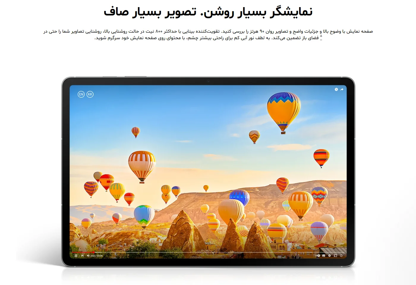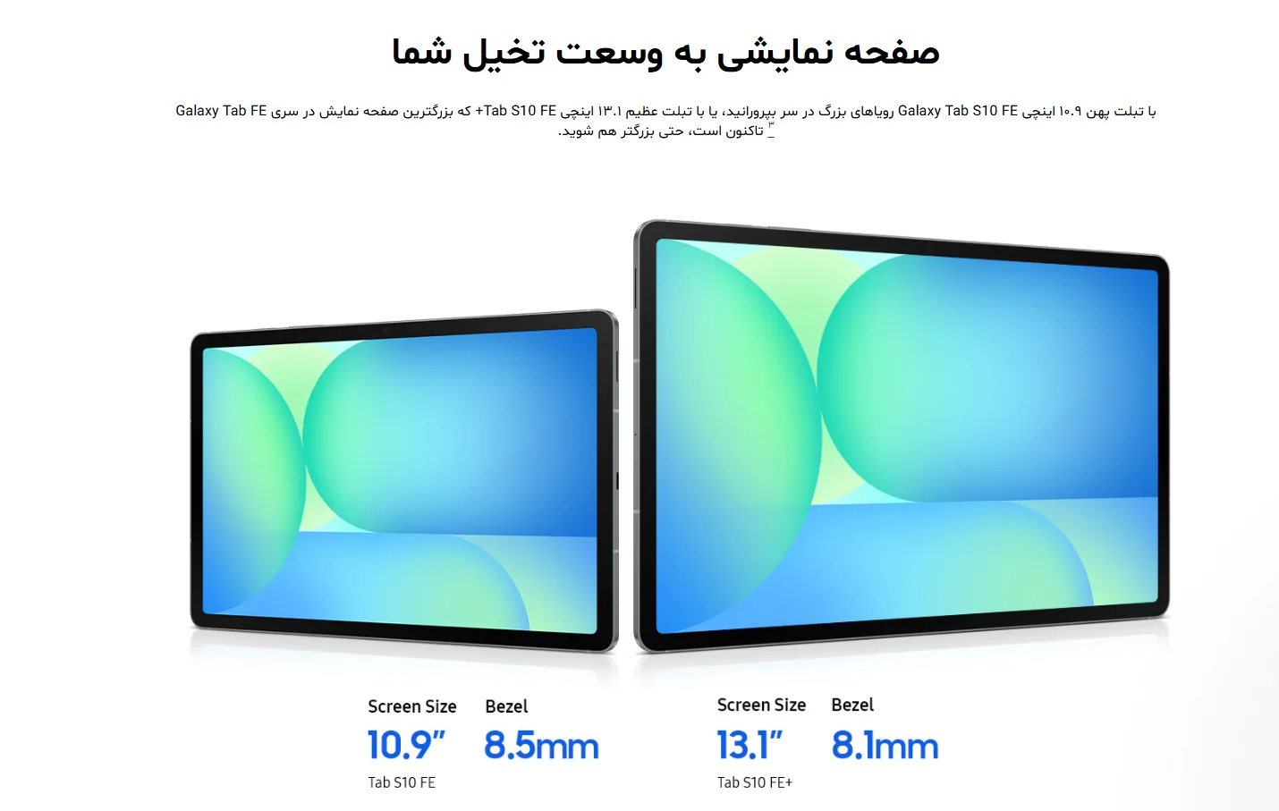 جایی که تفاوت FE با نسخههای اصلی مشهود میشود، نمایشگر است. سامسونگ بهجای AMOLEDهای معروف خود، در این مدل از یک پنل LCD 10.9 اینچی با رزولوشن 2304×1440 استفاده کرده است.