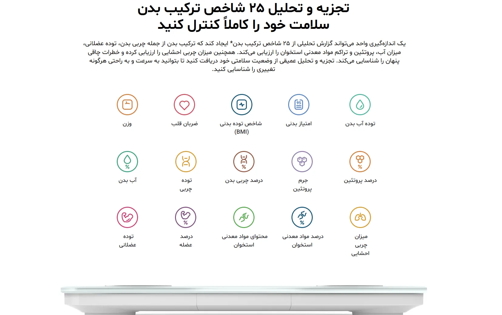 برخلاف ترازوهای معمول، S400 تنها وزن را نمیسنجد؛ بلکه ۲۵ شاخص بدن را تحلیل میکند: