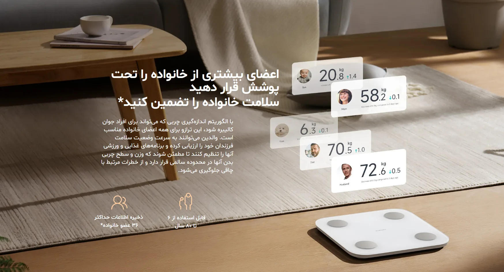 نتیجهی همهی این دادهها در اپلیکیشن Xiaomi Home بهصورت نمودار و تحلیل روزانه، هفتگی و ماهانه نمایش داده میشود تا بتوانید بهصورت علمی وزن و ترکیب بدنتان را کنترل کنید.