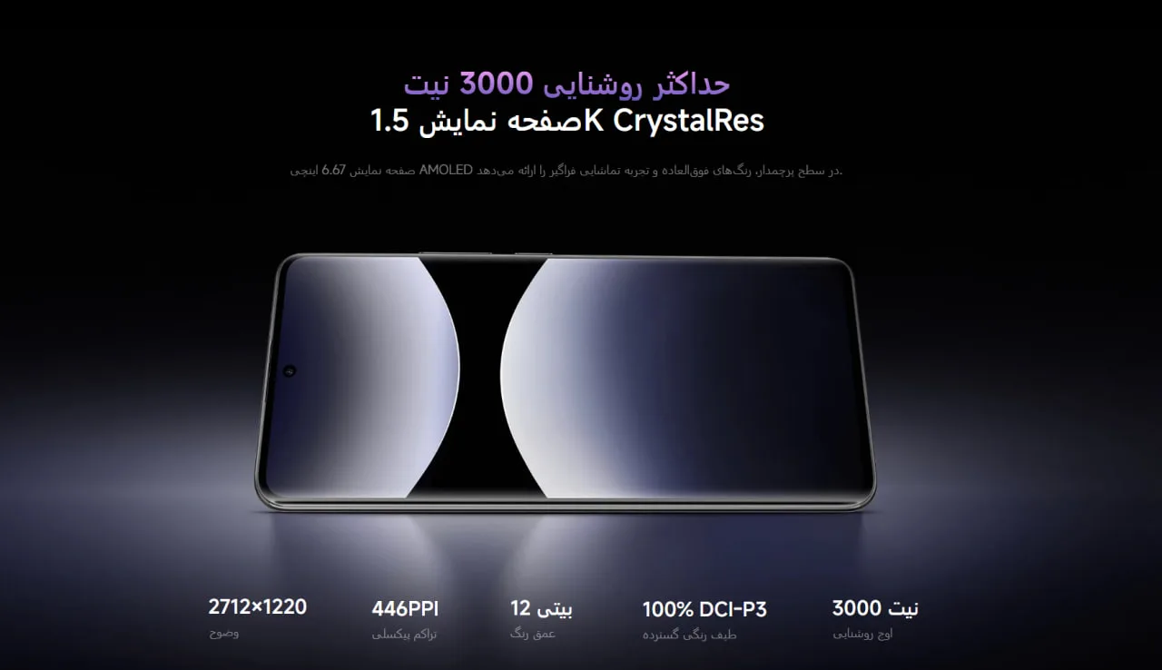 پوشش 100 درصدی فضای رنگی DCI-P3 ,عمق رنگ 12 بیت ,نرخ ثبت لمس 480 هرتز ,نمایشگر همیشه روشن (Always-on Display) |