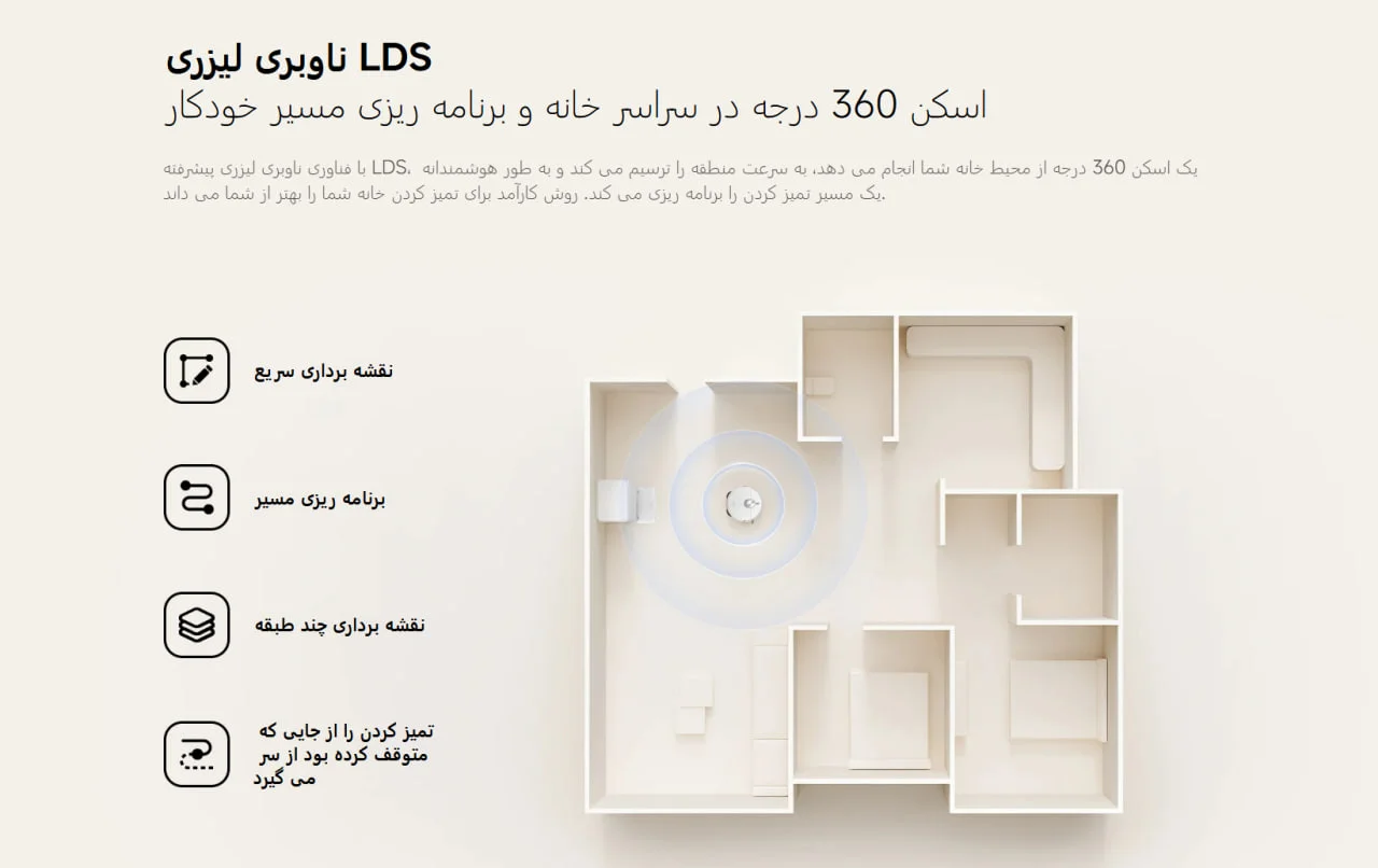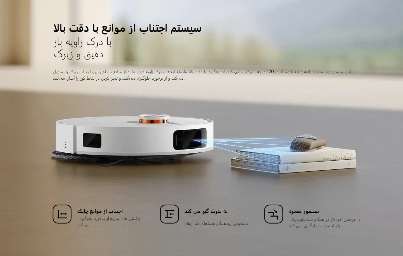 عملکرد کناری: در گوشهها و لبهها عملکرد متوسطی دارد. برس کناری نمیتواند به اندازهی برخی رباتهای گرانتر عمق تمیز کند، اما برای نگهداری روزمره کفایت میکند.