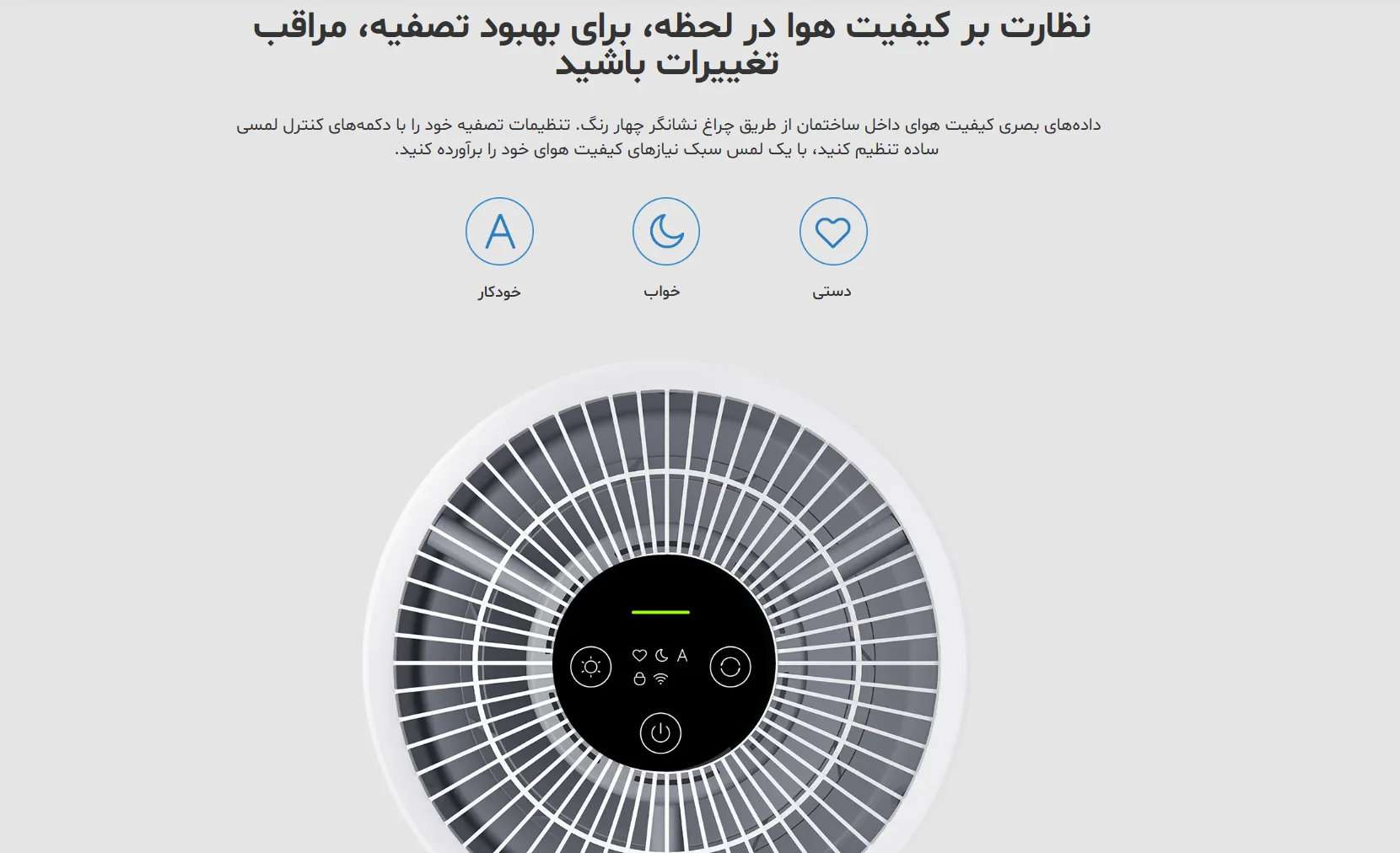 این مدل از سنسور دقیق ذرات معلق (PM) استفاده میکند که تغییرات کیفیت هوا را در لحظه تشخیص میدهد.