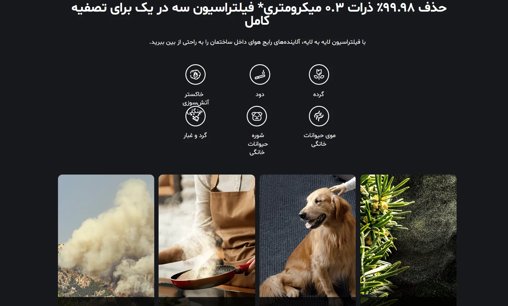 جذب گرد و غبار، دود، گرده، شوره و موی حیوانات خانگی