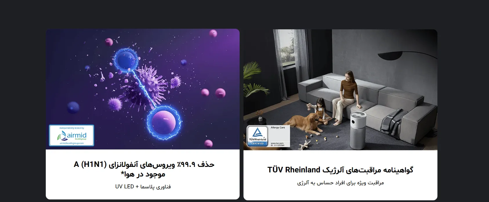 این دستگاه دارای گواهینامه رسمی مراقبتهای آلرژیک TÜV Rheinland است و در آزمایشها توانسته:
