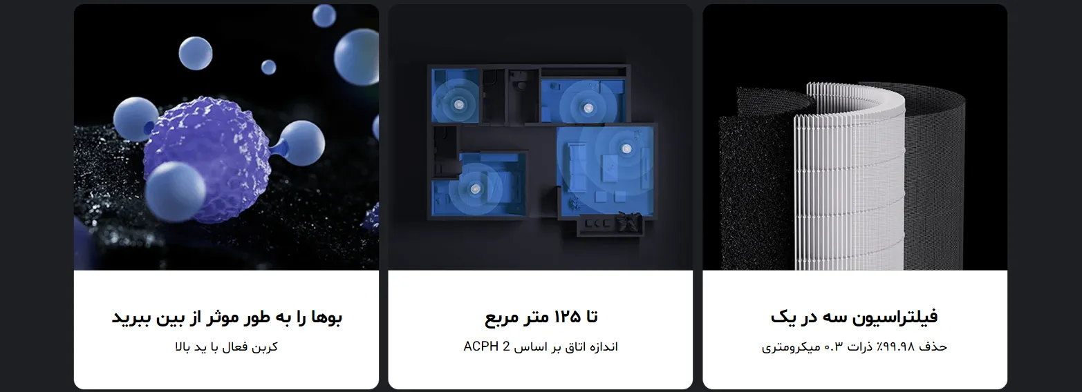 شیائومی در این مدل از فیلتراسیون سه در یک استفاده کرده است: