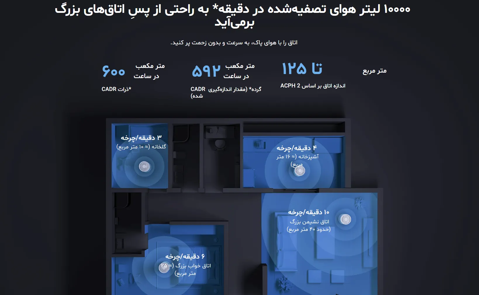 پوشش فضا: تا 125 متر مربع (بر اساس 2 بار تعویض هوا در ساعت)