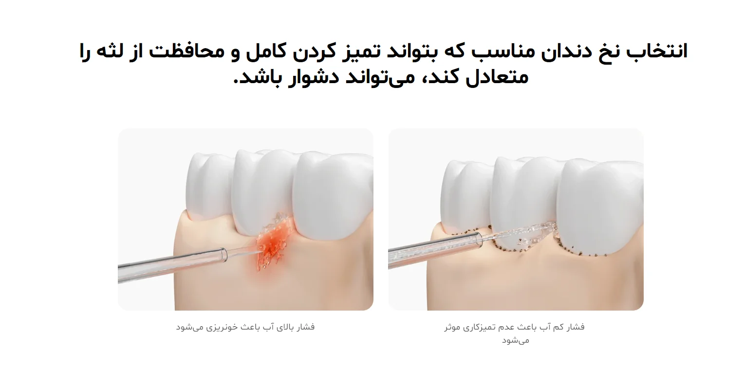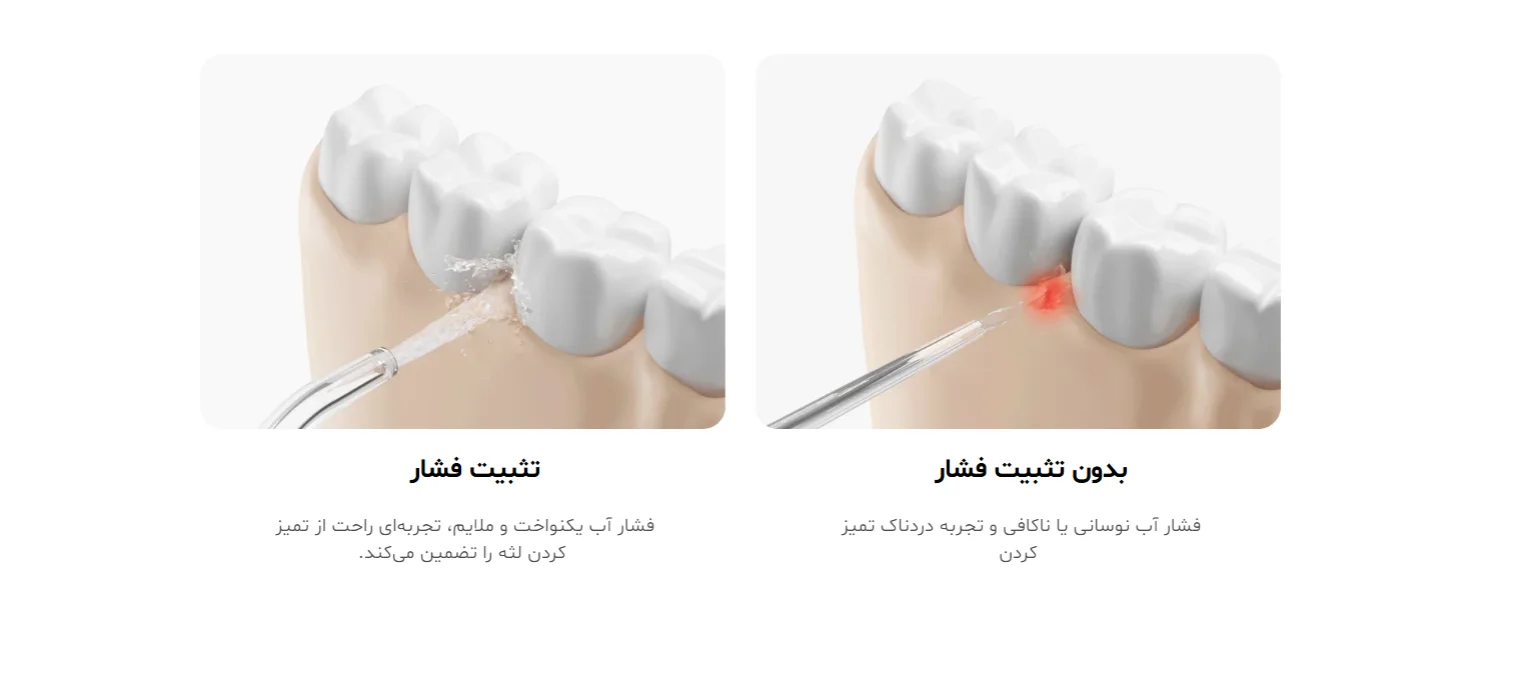 یکی از چالشهای رایج در واتر فلوسرها، تعادل بین قدرت و ایمنی است. شیائومی در این مدل با استفاده از سیستم هوشمند تثبیت فشار آب، این مشکل را برطرف کرده است. این سیستم حتی در زمان کاهش شارژ باتری، فشار آب یکنواخت و کنترلشدهای ایجاد میکند که ضمن جلوگیری از تحریک و خونریزی لثه، تمیزکاری مؤثری را ارائه میدهد.